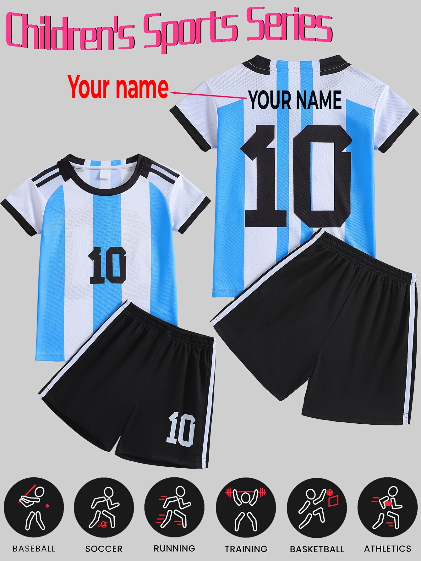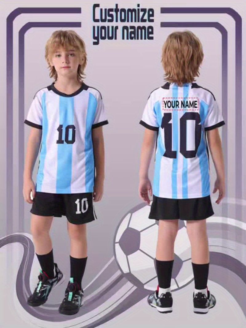 Let your little football star shine on the pitch with this custom kids' Argentina #10 soccer jersey set! Designed for young athletes and Messi fans, this complete uniform combines style, comfort, and personalization for all-day play.