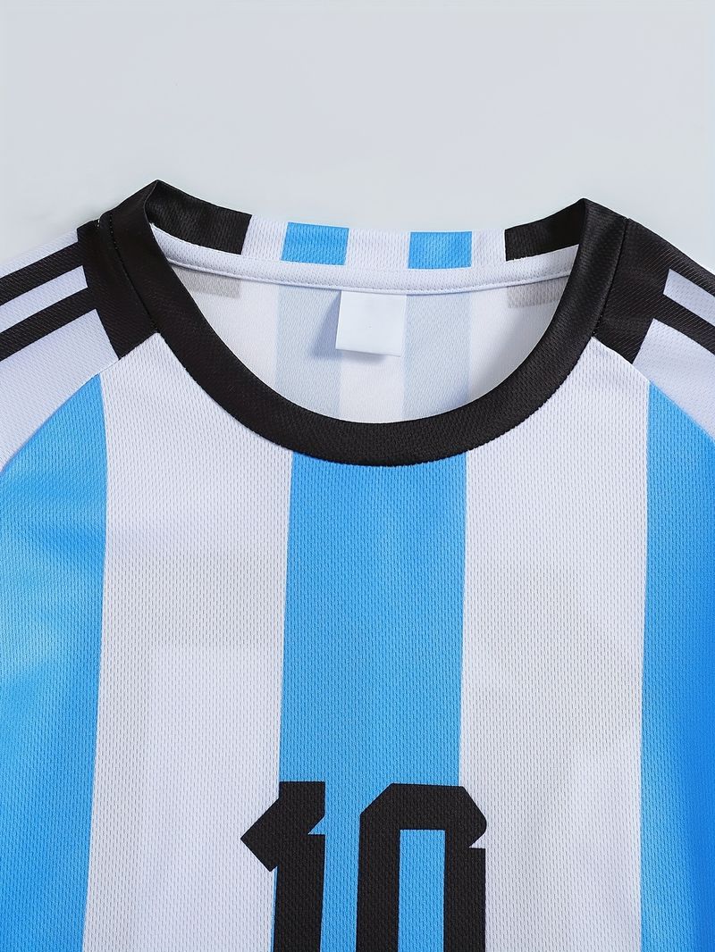 • Iconic Argentina #10 Design: Classic blue and white striped style, a dream come true for young Messi fans, great for daily wear, sports, and theme parties.